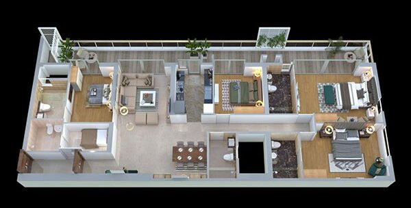 - Large apartment sizes