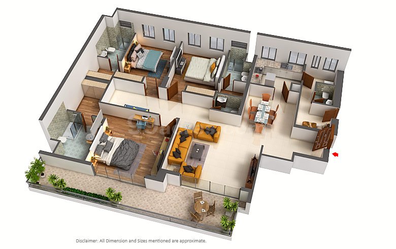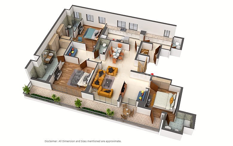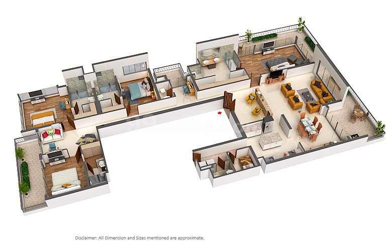 The project features spacious 3BHK and 4BHK apartments with sizes ranging from about 2850 sq. ft. to 5200 sq. ft.