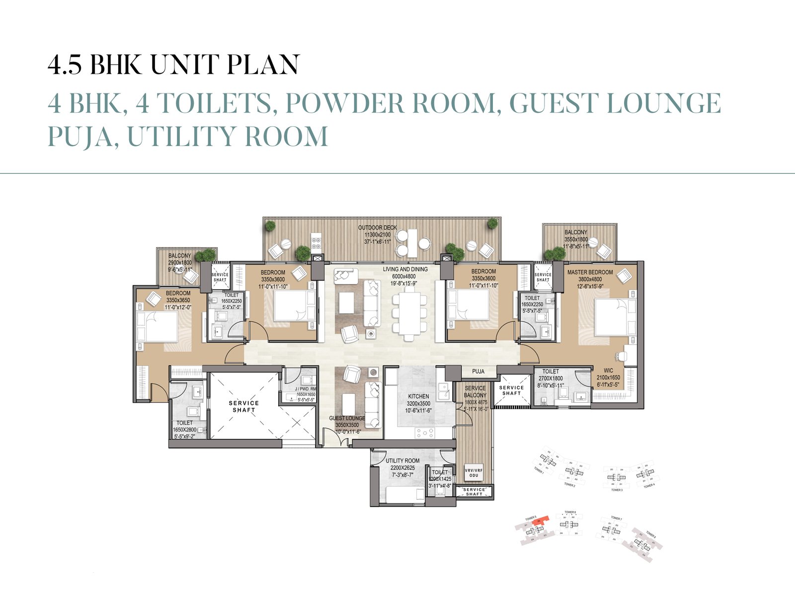 -Spacious Units: The project offers a variety of configurations, including 3, 3.5, and 4.5 BHK units, all equipped with en-suite bathrooms, expansive living areas, and large balconies to enhance ventilation and provide beautiful views.