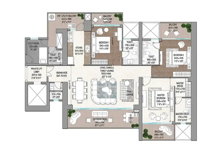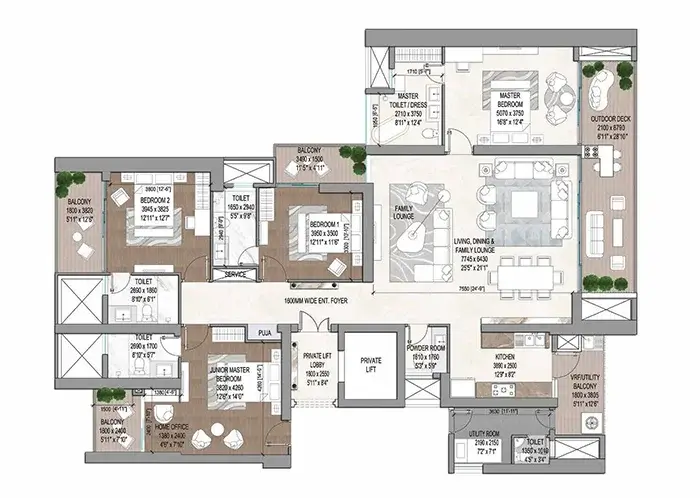 3.5/4.5 BHK Options: Spacious layouts designed to meet your needs and provide maximum comfort.